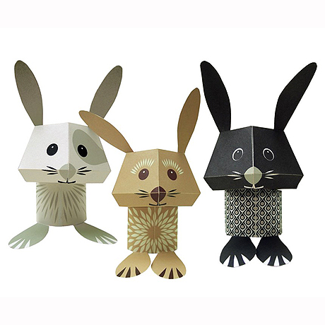An energetic gang of make-them-yourself paper rabbits. Each rabbit only takes about 5-10 minutes to make. All you need to start making is some scissors, a ruler and some glue. You will receive the templates to make all 3 rabbits, printed onto A4 recycled card, as well as full instructions. The rabbits range from 10cm-15cm high (including ears!) when made.